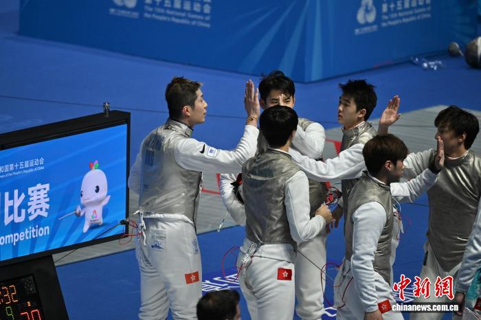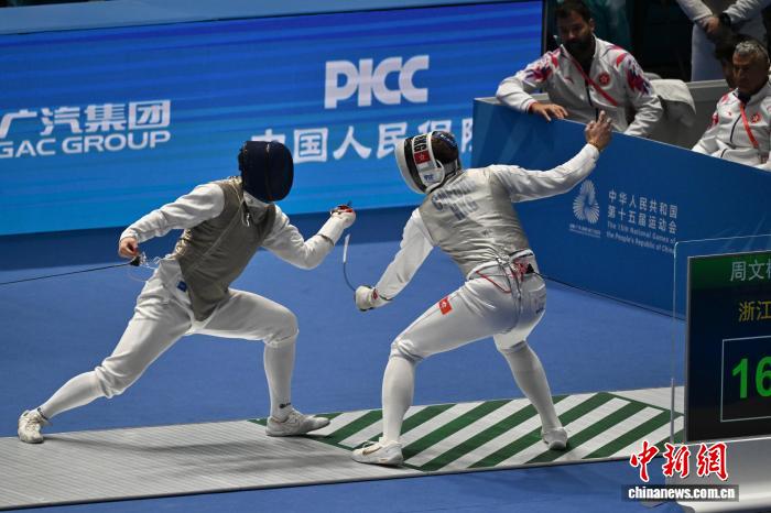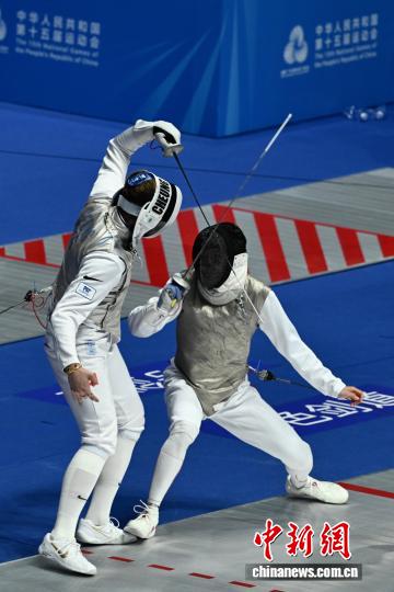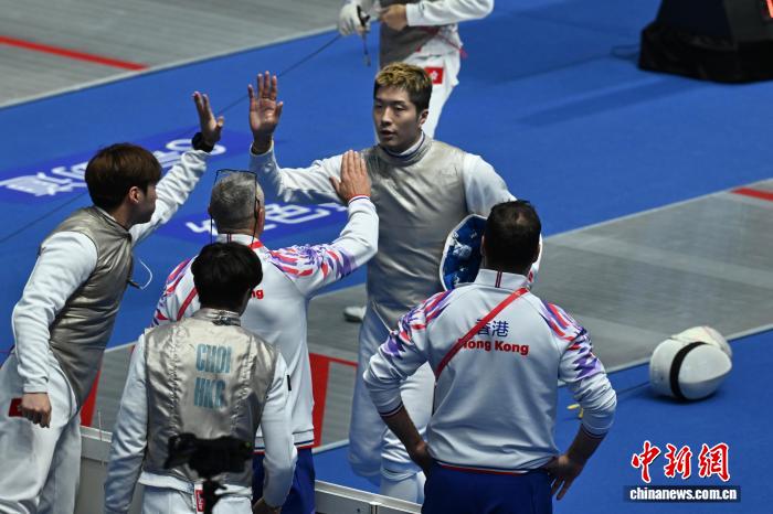 图为喷鼻港队选脚弛家朗(靠拢不雅赛区剑谈,左)对于阵江苏队选脚鹿恒睿。记者 李志华 摄